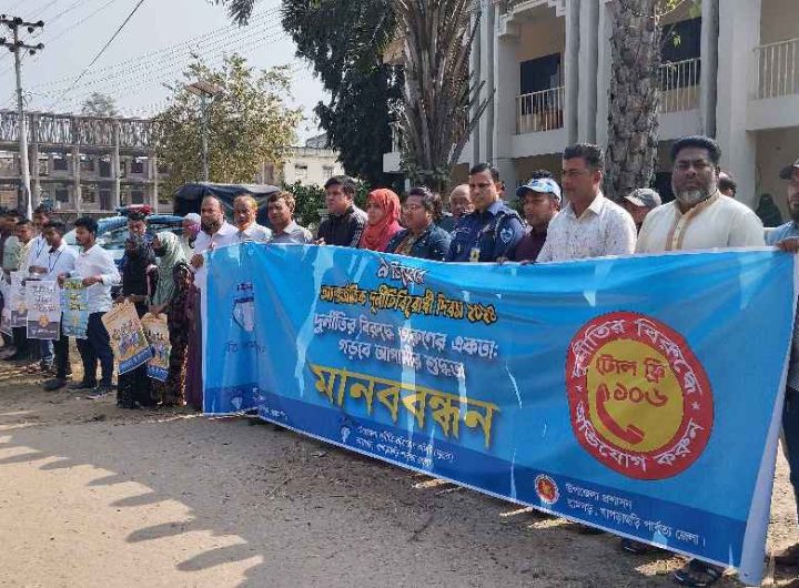 রতন বৈষ্ণব ত্রিপুরা, রামগড়, খাগড়াছড়ি : ‘‘দুর্নীতির বিরুদ্ধে তারুণ্যের একতা, গড়বো আগামীর শুদ্ধতা’’ এ স্লোগানকে সামনে রেখে আলোচনা সভা ও মানববন্ধনের মধ্যদিয়ে খাগড়াছড়ি জেলাধীন রামগড় উপজেলায় আন্তর্জাতিক দুর্নীতি বিরোধী দিবস ২০২৪ পালিত হয়েছে। সোমবার (৯ ডিসেম্বর) সকাল ১১টায় রামগড় পৌরসভার সম্মেলন কক্ষে উপজেলা প্রশাসন ও উপজেলা দুর্নীতি প্রতিরোধ কমিটি...