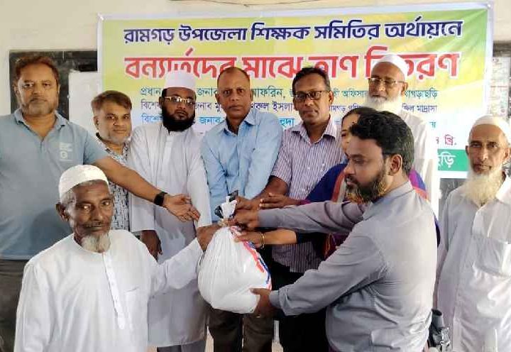 নিউজ ডেস্কঃ সারাদেশের ন্যায় খাগড়াছড়ির রামগড়ে সাম্প্রতিক সময়ে স্মরণকালের ভয়াবহ বন্যায় ক্ষতিগ্রস্ত পরিবারদের মাঝে ত্রাণ সামগ্রি বিতরণের মধ্যেদিয়ে বন্যার্তদের পাশে দাঁড়িয়েছেন ” রামগড় উপজেলা শিক্ষক সমিতি’র ” পরিবার । রবিবার(১৫ সেপ্টেম্বর) ৫৩ পরিবারের মাঝে ত্রাণ সামগ্রি বিতরণ করা হয়। যা পরিবার প্রতি চাল, মসুর ডাল, আলু, তেল, চিনি দেওয়া হয়।...