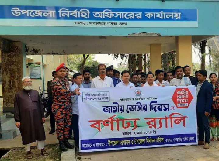“সঠিক তথ্যে ভোটার হবো, স্মার্ট বাংলাদেশ গড়ে তুলবো ” এ প্রতিপাদ্যে খাগড়াছড়ির রামগড়ে জাতীয় ভোটার দিবস পালিত হয়েছে। শনিবার ( ২মার্চ) সকালে এ উপলক্ষ্যে উপজেলা প্রশাসন ও উপজেলা নির্বাচন অফিসের আয়োজনে শোভাযাত্রা অনুষ্ঠিত হয়। উপজেলা নির্বাহী অফিসার মমতা আফরিন সভাপতিত্বে শোভাযাত্রায় প্রধান অতিথি ছিলেন উপজেলা চেয়ারম্যান বিশ্ব প্রদীপ কুমার...