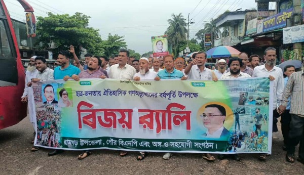 নিউজ ডেস্কঃ রামগড় উপজেলা, পৌর বিএনপি এবং অঙ্গ ও সহযোগী সংগঠনের আয়োজনে দলীয় কার্যালয়ের সামনে থেকে জুলাই গণঅভ্যুত্থানের ধারাবাহিকতায় আওয়ামী ফ্যাসিবাদের পতন ও ছাত্র-জনতার বিজয়ের বর্ষপূর্তি উপলক্ষে “বিজয় র্যালী” অনুষ্ঠিত হয়েছে। মঙ্গলবার (৫ আগস্ট) বিকেল সাড়ে ৪টায় রামগড় উপজেলা বিএনপির কার্যালয় থেকে বিজয় র্যালীটি রামগড় পৌরশহরের প্রধান প্রধান সড়ক...